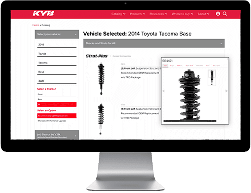 KYB offers a complete line of shock absorbers, struts, and complete assemblies for cars, trucks, SUVs, CUVs and vans. We are one of the world’s largest OEM suppliers of shocks and struts for new vehicle manufacturers. Our products can be found on some of the most popular cars, trucks and SUVs in North America.